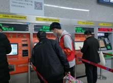 志愿者们到达站点后很快迎来人流量的高峰期,但是志愿者们依然有条不紊地维持着秩序。在出入口的志愿者们主动上前帮助乘客拿东西并且询问是否需要其他帮助,在自助售票机处的志愿者们细心地协助乘客购票或者指导乘客安装并使用Metro新时代APP,在刷卡处的志愿者们帮助乘客解决无法扫码或刷卡的问题。当遇到公交卡或APP无法使用等特殊情况时,志愿者们迅速地将乘客引导至服务台处,协助工作人员解决问题。