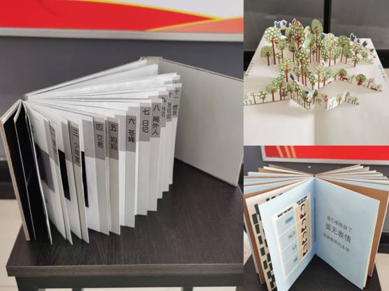 “在屏幕化阅读盛行的当下,书籍如何发挥文本阅读之外的功能,从而留住读者、留住阅读?”作为此次《书籍设计》课程的指导老师及书籍展的负责人,王磊老师希望同学们借此次的书籍设计作品能给予大家答案和思考。针对书籍展,王磊老师表示:“童趣俏皮的故事书、古朴典雅的图册、特殊裁切的异形书等20余件设计精美的书籍,打破了书籍印刷单调、沉闷的固有印象。精美的外在设计和装帧,让读者在获取知识的同时,也获得了愉悦的视觉享受和阅读体验。”