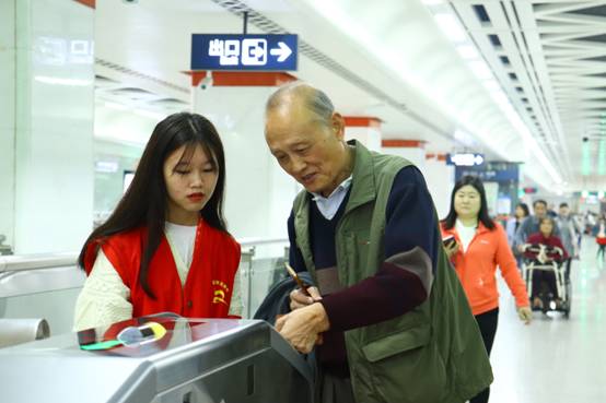 在整个服务过程中,总能看见志愿者积极为乘客们指引方向,协助购票的情景,虽然有时也会遇到一些志愿者们无法解答的问题,但他们会及时询问地铁站工作人员,竭尽所能给乘客们带来帮助。志愿者们的服务为维持地铁的运营秩序做出了不小的贡献。