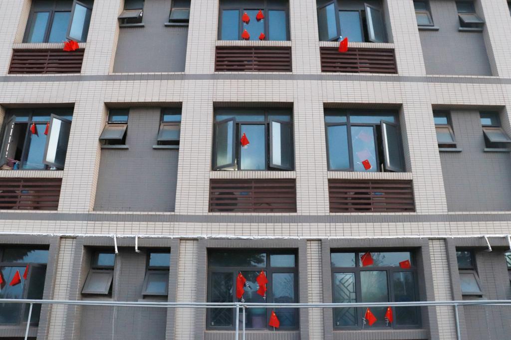 “五星红旗是我们的国旗,它代表了中国,代表了我们,它明亮的红色象征着革命。在我们安装完国旗后,走进宿舍,看见的便是窗户上迎风飘扬的五星红旗。它充满着希望与光亮,它满载了我们对祖国美好的祝福。”19级新生付林霞感慨道。