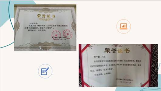 桂檀斋三舍227寝室学习氛围优良且寝室成员学习成绩优良、多次参与艺传学院“地铁之行”“文明一小时”等志愿活动,积极参加学院举行的各种活动并获得奖项,除了学校举行的各种赛事她们积极参加以外全国大学生“创新、创意、创业”挑战赛、全国高校祖国知识竞赛等国家级大学生比赛也有她们的身影,并取得了优异的成绩,这也为艺传学院增添了荣誉。