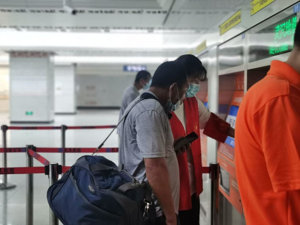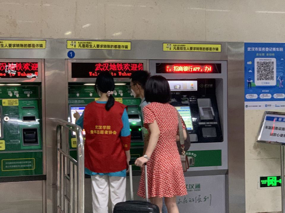 正值端午假期,也是端午节,无论是出行游玩或是回家的人数都达到了一个顶峰,而地铁站作为重要的交通枢纽,在假期间必然也将面对比以往都要大的人流量。武昌火车站的工作人员特意向领队嘱咐了地铁乘车码支付宝与微信的打开方式,之后领队梁协芬分别告知已经分配好了站点的志愿者,让他们在乘客通行匝道口遇到困难时协助他们通过。