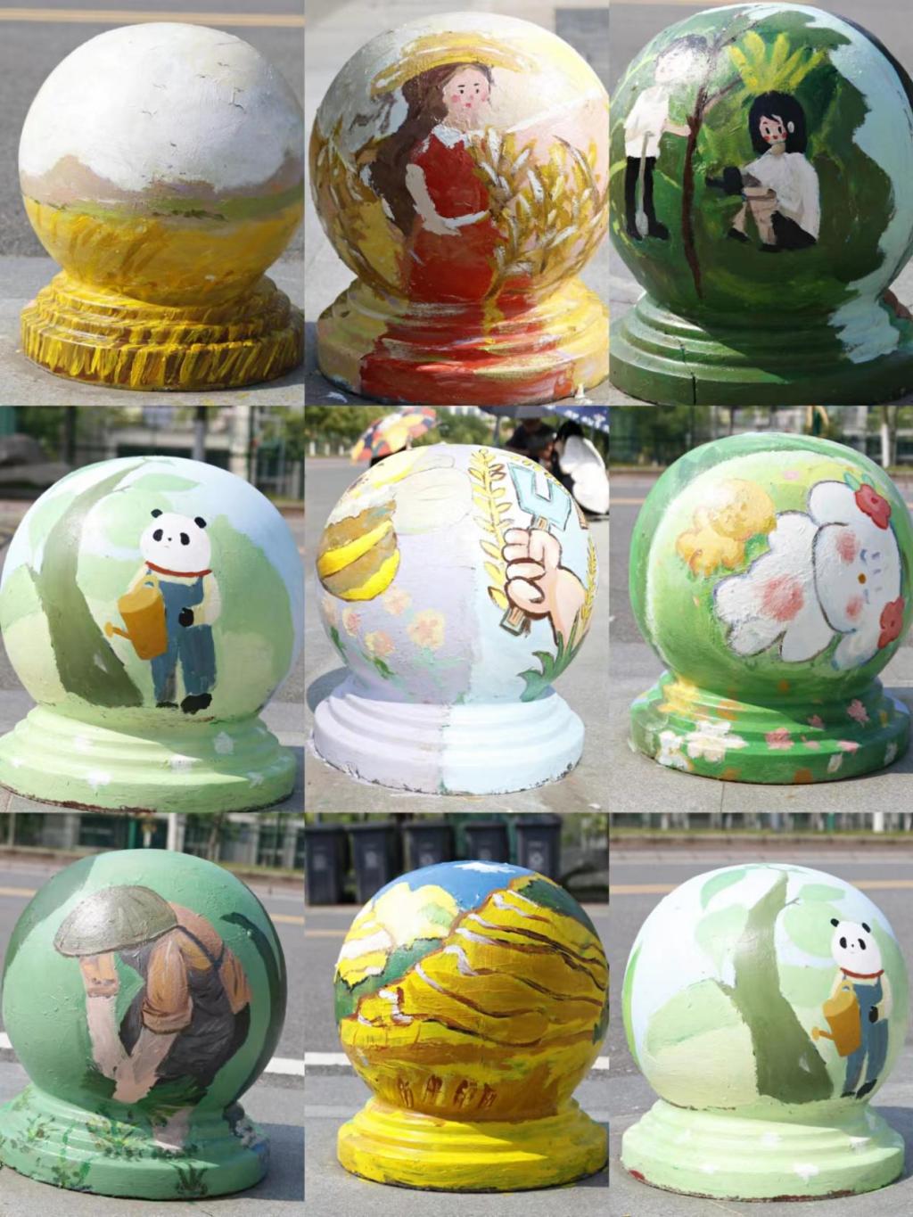 经过志愿者们连续两天的绘制,二号三号学院楼的石墩都已换上了新衣,路口呈现一副崭新的面貌。最后,志愿者们进行整队拍照,标志着此次活动的顺利结束。