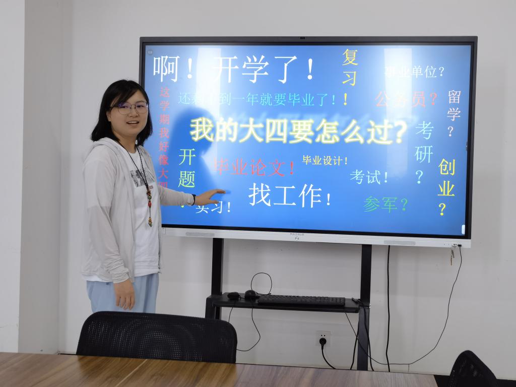 首先陈殊慧老师介绍了学生在大四阶段在毕业论文、求职、考研和考公各事项中需要把握的重要时间节点。陈殊慧老师指出进入大四后,毕业论文、实习、考研、求职、考公等事情接踵而至,一些学生容易产生迷茫和焦虑感。作为毕业班辅导员要提前了解学生考研、考公的人数和求职意愿,整体把握所带班级的发展方向,做好指导工作和压力疏解工作。在政策传达上,要清晰明了地将各个事项的进程以月份为单位进行细化,通过召开主题班会,帮助学生提前做好规划。