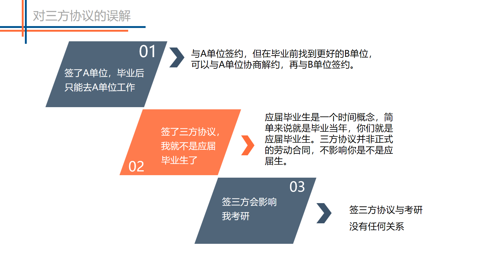 接着陈殊慧老师针对学生就业工作中的常常出现地问题进行了解答,在求职中许多学生对三方协议的作用不甚了解,辅导员要耐心做好解答工作。另外不少同学对签订三方协议有顾虑和误解,认为签订了三方协议会影响应届毕业生的身份,为此辅导员要向学生明确地解释应届毕业生的概念,告知毕业生在择业期(两年)内没有签订劳动合同,没有缴纳过社保、公积金,而且档案还存放在当地的人才市场,就仍具备应届毕业生身份。