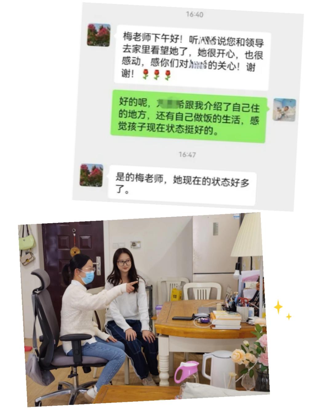 家访结束后,学生妈妈给辅导员发来感谢消息,感谢学院领导和辅导员对孩子的关心与关注。