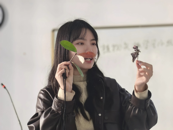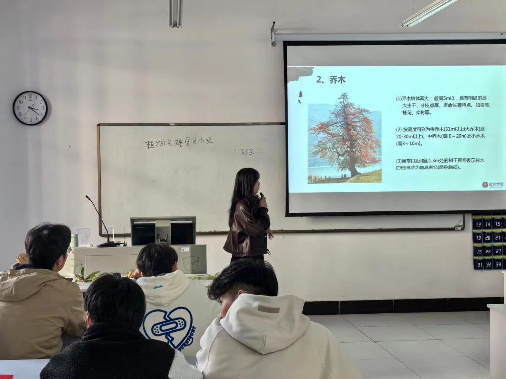 何雨倩老师首先从学校的常见植物开始,向同学们介绍了乔木、灌木和花卉等植物类型,结合树叶的形态特征,她详细解释了每种植物的生长特点、观赏价值和生态作用,让同学们对学校的植物有了更加全面的认识。