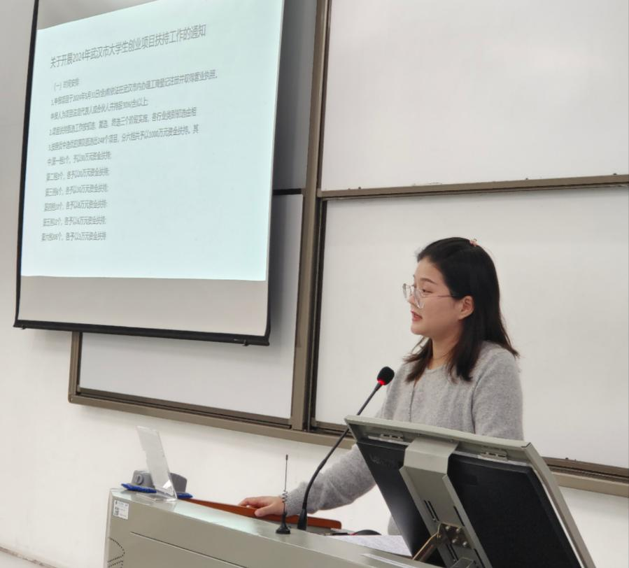贺兵丽老师详细地解读了2024年武汉市大学生创业项目扶持政策的最新动态,阐述了申报对象的资格要求、扶持条件以及具体的申报流程。贺老师强调,此次扶持政策旨在为广大青年学子搭建起实现创业梦想的桥梁。她鼓励正在创业的同学们充分把握此次创业扶持的机会,锻炼实践能力,提升市场竞争力,进而为自己未来的职业发展打下基础。
