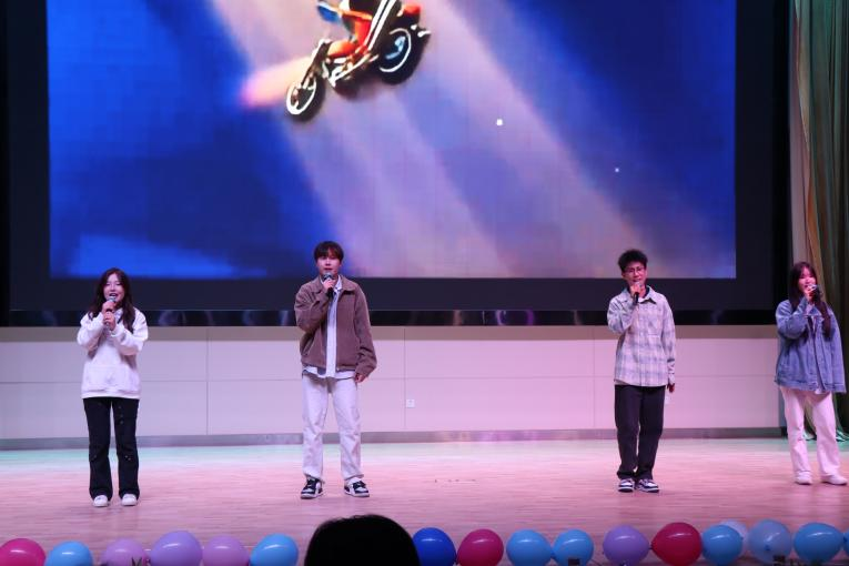 曹书记致辞结束后,由艺术团副团长王奥迪以及其他三位同学带来的歌曲《我乘着风飞过来》,在热情的歌声中点燃了现场的气氛。