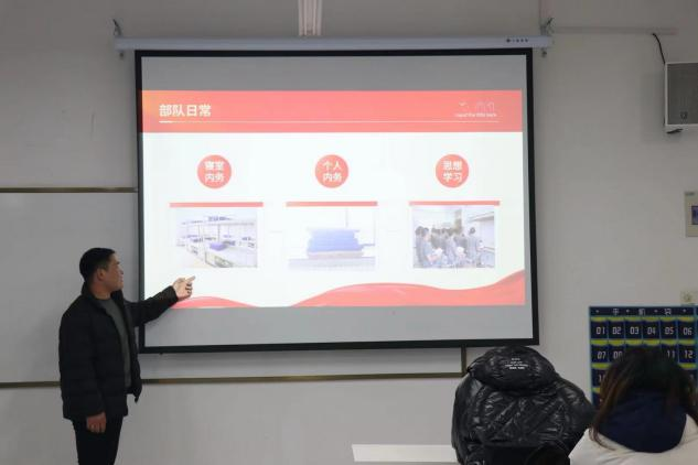 随后,武施宇分别从部队日常、部队饮食、娱乐活动和战备训练四个方面分享了自己的军旅经验。特别强调了军队的条令条例,对个人内务和环境维护的要求,展现了军队生活的整洁和规范。部队生活除了日常的军事训练,还会根据自己的地区文化增设很多活动以丰富官兵的课外生活,比如过年时集体包饺子的传统,体现了部队中的团队精神和节日氛围。平时还有尖兵比武、文艺演出、知识竞赛、军人运动会等各式各样的活动。这些活动旨在增强团队精神和技能,不仅提升了军人的专业技能,也丰富了他们的业余生活。武施宇讲述了在部队中如何通过艰苦训练突破自我,从一名普通青年成长为一名坚毅的战士。部队生活不仅培养了纪律意识,还让他学会了担当与责任。通过本次精彩分享让大家对军旅生活有了更直观、更深刻的认识。