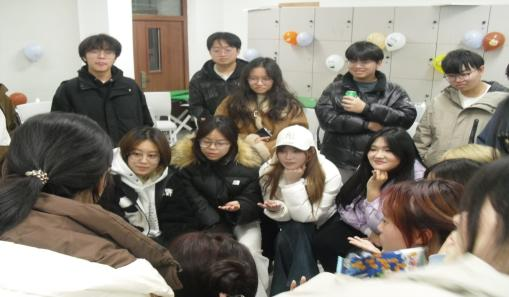 为进一步增进班级同学之间的深厚情谊,丰富多元的校园文化生活,全力营造欢乐祥和的元旦节日氛围。2024年12月18日下午,环境设计2402班在学5206教室举办了一场元旦团建会。yL23411永利官网登录党总支书记曹辉老师、团委书记杨喻老师、王雨杉老师亲临现场,与同学们欢聚一堂,共同迎接新年的到来。本次团建会以“同窗齐聚,共赴新程”为主题,活动现场欢歌笑语,洋溢着浓郁的节日欢乐氛围。