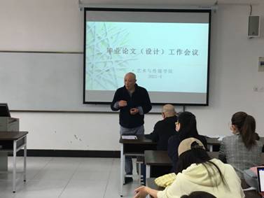 曹丹院长布置了近期毕业论文(设计)重点工作,强调要进一步加强毕业论文(设计)规范化建设与管理,希望各位论文指导教师严格按照评建要求开展完成各项工作任务。在毕业论文指导工作中,通过图片拍摄、截屏、批改论文复印件等形式,形成毕业生论文(设计)网上指导、批改论文、面对面指导工作的实据,保留教学痕迹。同时要把教学规范、规章制度丰富完善,做到制度管人。