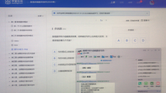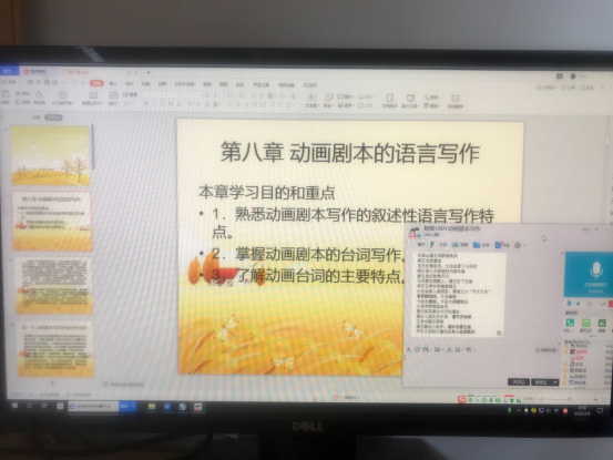 除上课之外,姜莉老师还负责孩子班级和学校新媒体艺术系的统计报平安工作。疫情期间,姜莉老师也没落下科研工作,准备带领她的校级科研团队,积极申报国家社科基金艺术学项目,故每次一忙都是深夜,且第二天早晨又必须早起。循环往复,就这样迅速消瘦下来。姜莉老师曾教过的学生高仁俊,现在于武汉方舱医院当志愿者,在了解到她的情况后,多次给予她支援。而她现在的学生,也特别配合老师上课,因此被作为优秀线上课堂由学院报为推荐省教育厅听课课堂。“老师在课堂经常会询问我们有没有听懂,或是语速如何,不明白的地方会重新为我们讲解,且每次讲完都会再发一遍文字,真的特别照顾我们的感受。”数媒1801班的同学说道。就这些简单的事情,让姜莉老师觉得“这就是我的职业幸福感。”