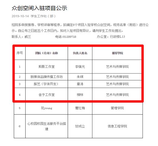 (众创空间入驻项目公示)