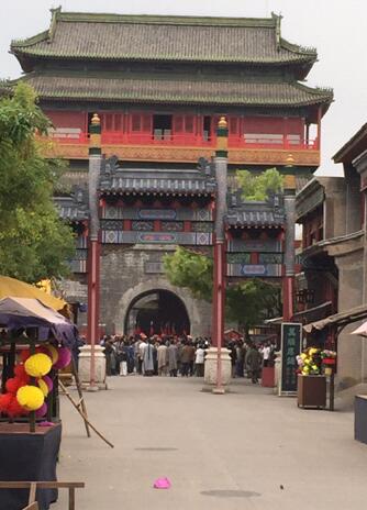 第二天,我们陆续参观了明清宫苑和华夏文化园。明清宫苑始建于1998年,它仿造北京故宫1:1建造的,是目前横店影视城最大的影视基地。明清宫苑参照了明清时期宫廷建筑手法,荟萃了京城宫殿、皇家园林、王府衙门、胡同民宅等建筑系列,真实地再现了多个历史时期燕京的官府民居、街市店铺和宫殿风貌。高大的城门,金黄的瓦片配大红色的砖墙,气势如虹。从格局构造和颜色便烘托出“皇家宫苑”的气派,一砖一瓦,一柱一雕,一草一树,搭配布置,高低错落,不禁让人想到场景布局的设计之重要性。