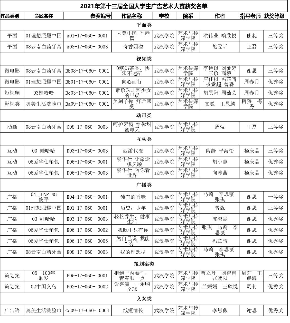 (我校此次大广赛获奖情况汇总)