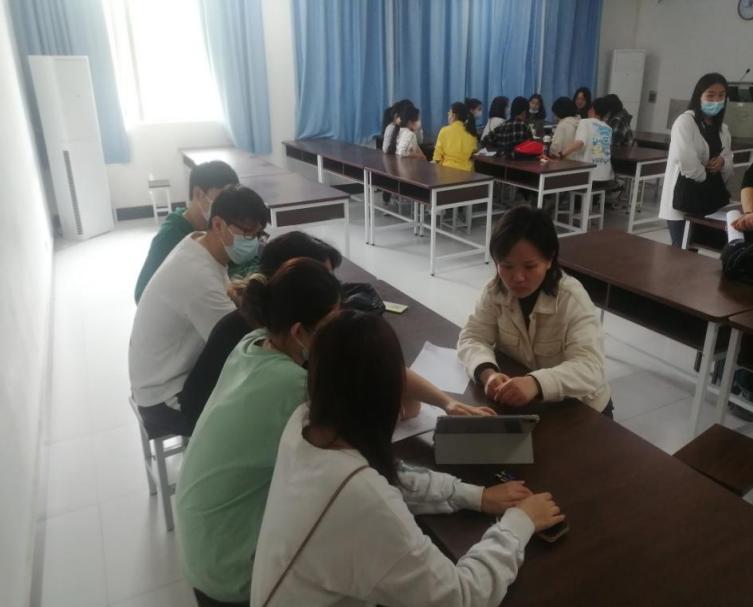 本次检查共分为四组,每组有四名教师参与检查与指导,学生以线上和线下形式分批汇报,汇报中要求学生对自己论文框架,创新点提出问题进行阐述。汇报小组首先对学生在写作过程中提到的问题作出回答,在针对所汇报的内容有针对性的分析和指导。线下汇报结束后,线上学生由于疫情和工作原因采用腾讯会议集中进行汇报,并作了详细的回答和指导。