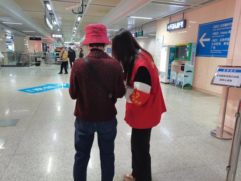 九点整,第一班的同学便被安排在售票机、闸门、扶梯旁展开工作。志愿者个个精神百倍,仪态端庄,耐心地帮助不会买票的乘客购票。江汉路地铁站人流量较大,为了避免拥堵,志愿者迅速地解决了乘客所遇到的问题,为后面需要购票的乘客节省了时间。当有老年乘客需要购票时,志愿者耐心温柔地引导,教他们如何操作,并提醒他们在疫情期间,需要打开实时行程码乘车。在闸门旁的志愿者细心留意乘客进出闸门的情况,有些乘客不知道如何扫码进站,志愿者们便上前耐心地引导。遇到有闸门失灵的情况,志愿者引导乘客先从旁边的闸门进,并及时向地铁工作人员报备,让技术人员及时检修,保证后面的乘客能够顺利地通行。若有乘客公交卡余额不足或持有过期票无法进站志愿者需要指引他们去到客服中心寻求工作人员的帮助。志愿者还帮助行李太多的乘客搬行李,送他们出站。在扶梯旁的志愿者在遇到问路的乘客也耐心帮忙指路。轮换三班,志愿活动结束后,志愿者们有序回到了学校。