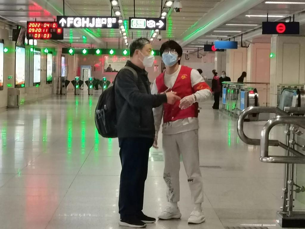 4月3日早上7点45分,志愿者们准时到达学校东门国旗下集合,签到完成后,一同前往江汉路地铁站。因处于疫情防控特殊时期,志愿者在地铁工作人员的带领下测量了体温并做好了基本信息的登记。