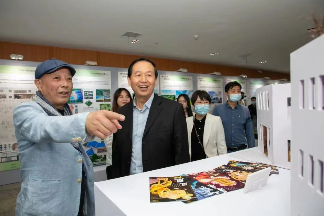 副校长郑祝君、鲁先发、黄保红在毕业生作品前驻足观赏