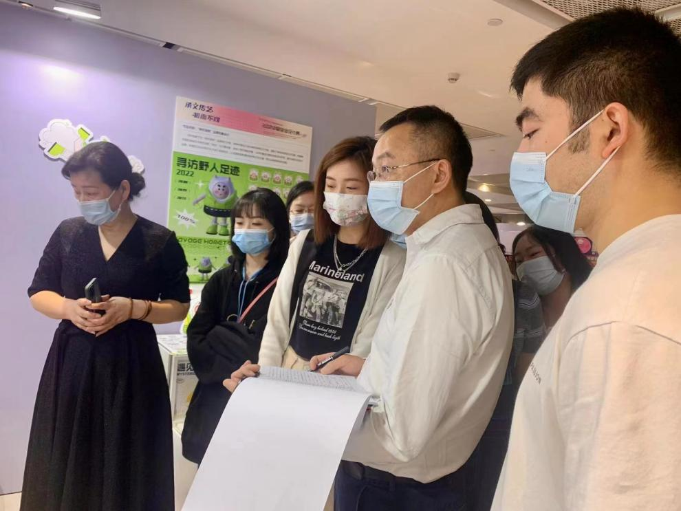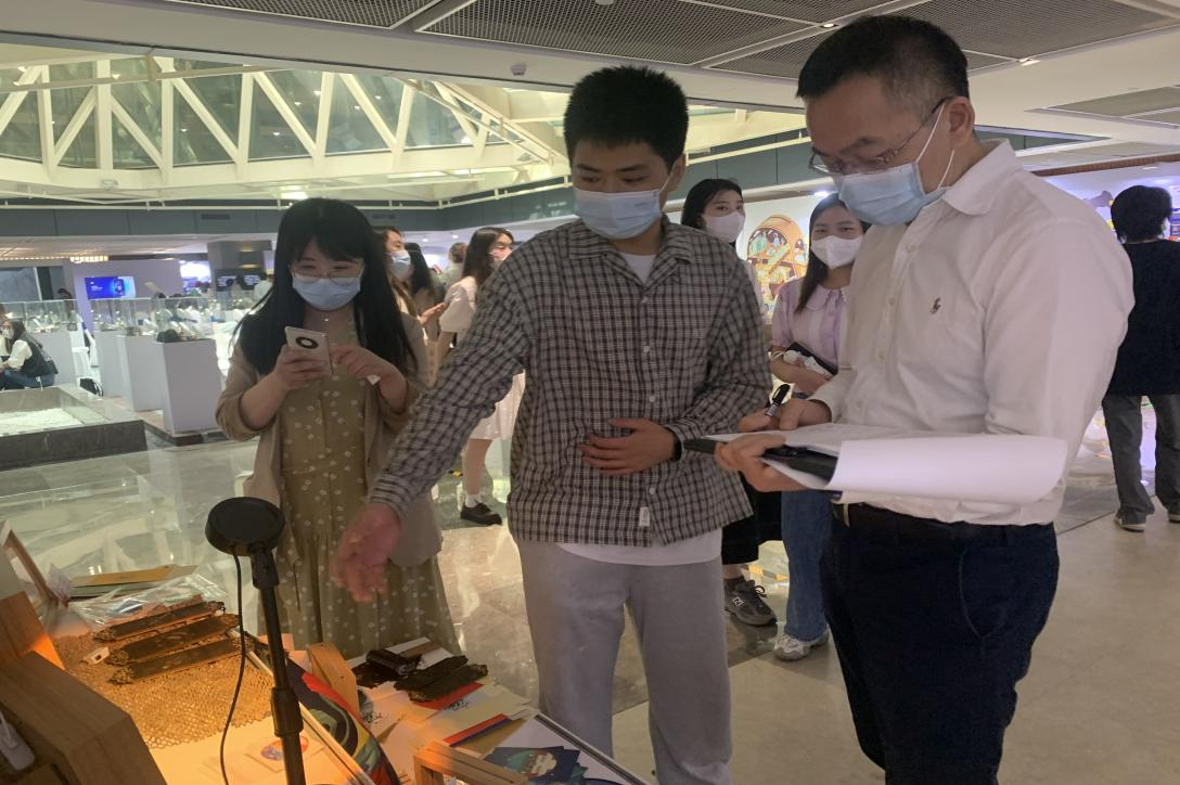 余教授认真观摩了学院各个专业的毕业设计作品,他与学生们亲切沟通交流,学生把设计成果与余教授沟通分享,当他看到新媒体艺术系的毕业设计作品时谈到,我校大多数学生毕业设计符合学校应用型创新人才培养目标,实用性较强,设计作品完成度较高。