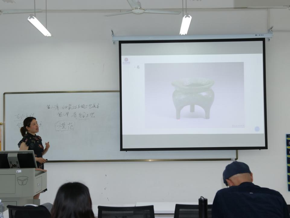袁玉冰老师作为第一位上台主讲的老师对夏商周青铜器物展开的细微讲解吸引了评委们的目光。图文展示中,她生动地阐述着中国古代工匠的智慧和青铜器皿的奥妙之处。其间,袁老师以新颖的视角展开的“工艺品拍卖会”特色教学,受到了评委的称赞。 彭婵娟老师生动讲解《影视制作特效与非线性编辑》的课程内容,实训了现场“互动”,教学现场气氛热烈、活跃。成晓丽老师通过《新闻采访》教学,将“开放式与封闭式”的提问环节安排得丝丝入扣,讲述、互动一气呵成,其针对语言逻辑的分析,得到了在场评委的一致认可。