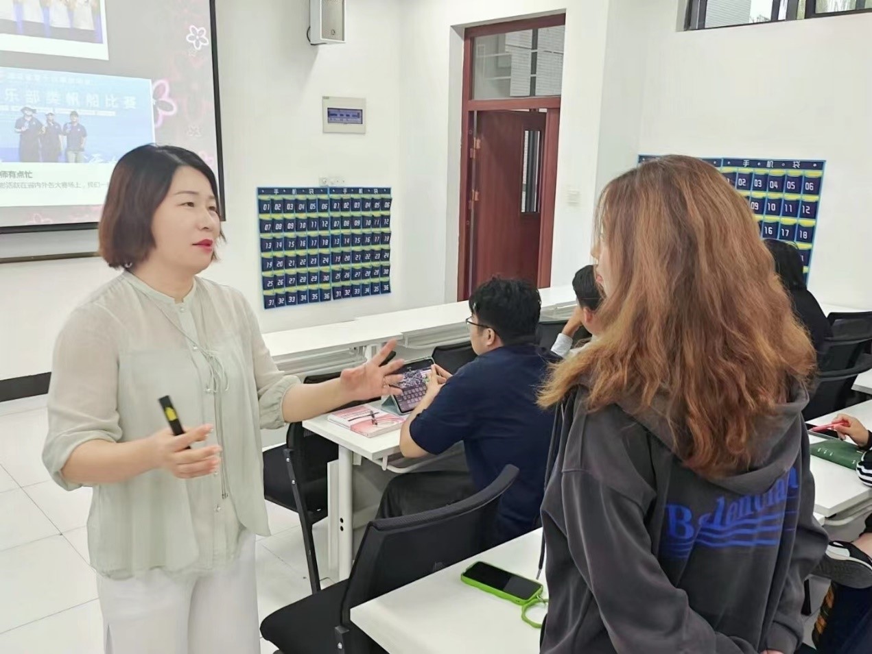 讲座过程中,周桂霞还结合自身经验,声情并茂地提醒作为校园通讯员写作中应注意的问题。与此同时,在讲解时还不忘与同学们进行友好互动,分享了一些新闻稿件的拍照技巧并对他们进行提问,让现场教学的知识学以致用,为会场增添了活力。