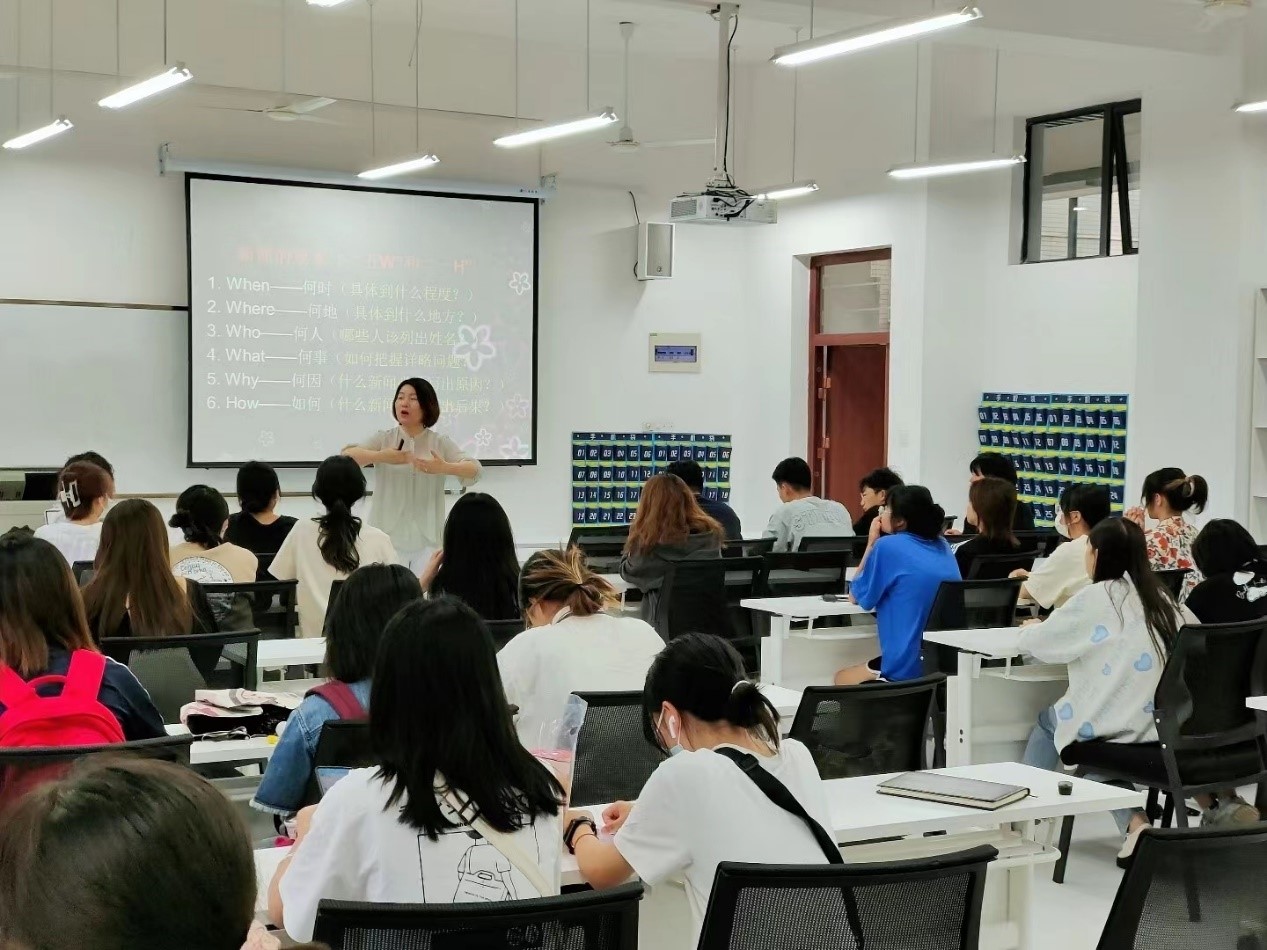 金秋时节,丹桂飘香。为培养团学联干事写作能力,提升学院新闻稿件水平,9月23日下午五点,yL23411永利官网登录党总支副书记、副院长周桂霞面向团学联全体干事在学5209举行了校园新闻写作知识讲座。