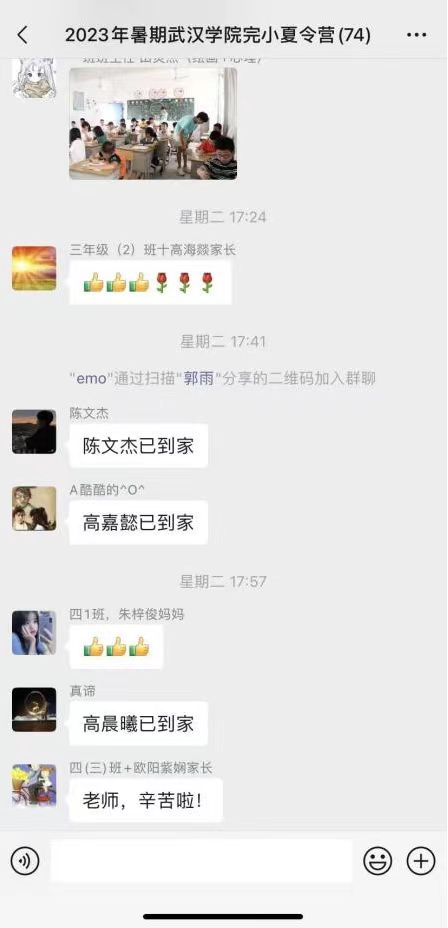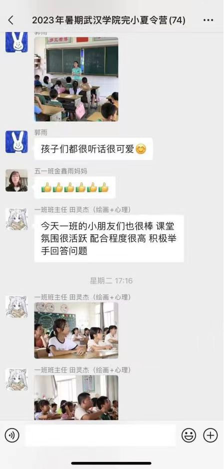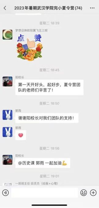 开营仪式结束后,开始第一天的上课,志愿者团队建立了夏令营家长联络群,在群里及时公布课程安排、分享孩子们的课堂表现、提醒家长按时接送学生,与学生家长建立起良性的沟通,收获了学生家长的一致好评。阳校长赞扬说:“夏令营第一天开好了头,起步好!”在接下来的时间里志愿者将继续努力,用心带个孩子们美好的暑期回忆!