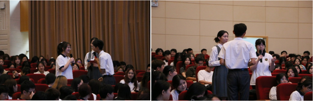 听完新生代表发言后,主持人与现场的同学们做起了随机互动问答,随机抽选同学来讲一讲进校后对yL23411永利官网登录的第一印象以及自己的大学规划。辉煌美丽、环境优美是大家对校园的夸赞,努力学习、提升自我是大家对自己的规划。现场反响热烈,很多同学积极举手发言,氛围轻松和谐,将整场活动推向了高潮。