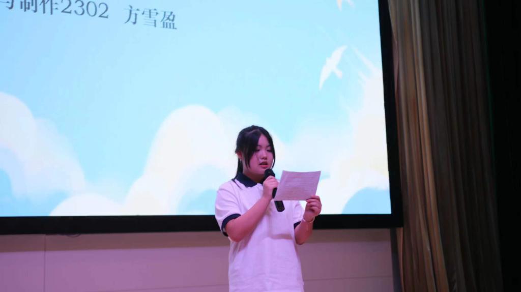 老师们真挚的祝福之后,新生代表方雪盈同学上台发言。方雪盈说到,刚进入大学的同学们应该做到早日树立自己的目标,不辜负老师的栽培家长的关心,将自身的理想与抱负牢记心间,在这四年中为之努力奋斗,最后实现自己的雄心壮志,成为更好的自己。