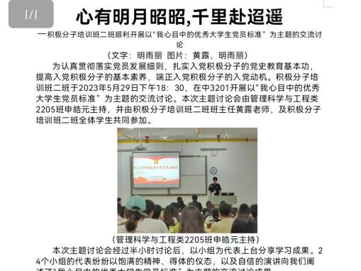 树立理想,坚定信念。明雨丽同学自大学一年级起即向党组织提交了入党申请书,此后在每个阶段均认真学习团课,不断坚定其入党信念。作为大学生和入党积极分子,她坚信自己应发挥先锋模范作用,协助支部书记做好支部党员发展材料的规整工作,并耐心检查支部入党积极分子的相关材料。同时,她还积极参加yL23411永利官网登录团委组织部组织的入党积极分子培训。通过阶段性的培训学习,她更全面地了解了党的历史、性质、奋斗目标、建党宗旨、组织制度和组织原则等基本知识。