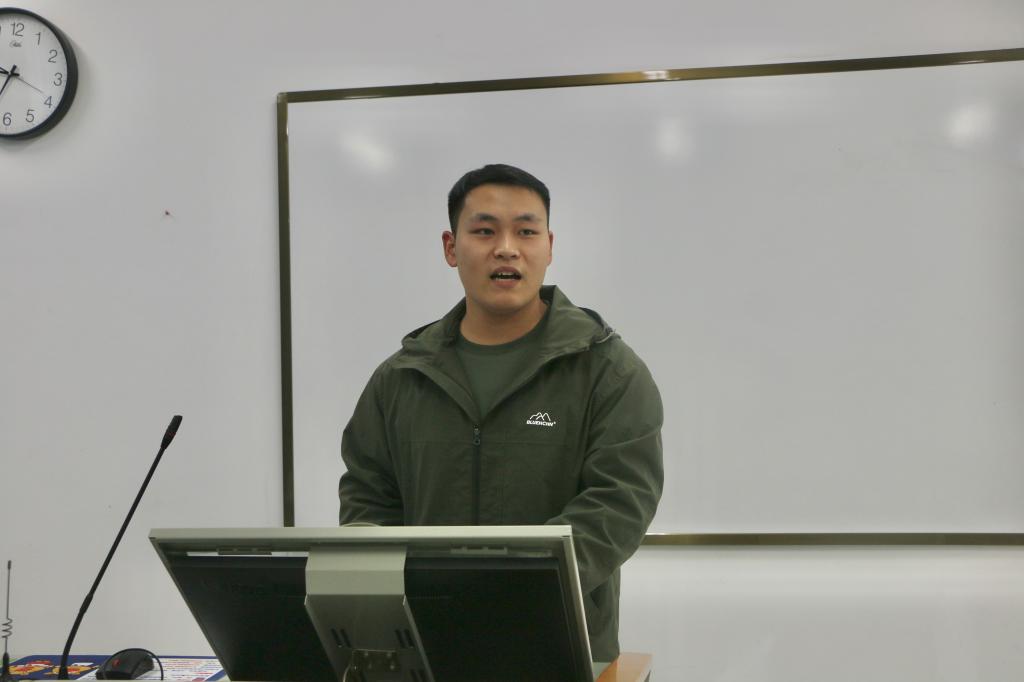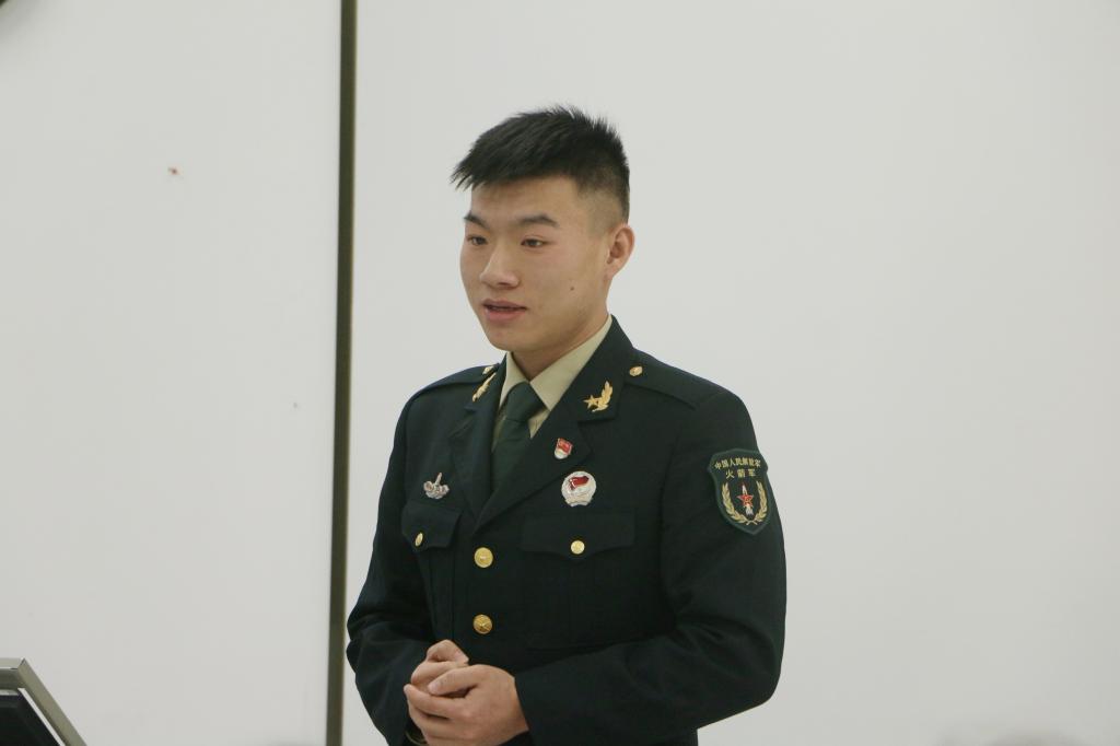 随后,退伍学生杨博文也分享了自己的军旅生活,讲述了其由一名普通大学生成长为优秀士兵的难忘经历与回忆。他针对自己参军入伍的初衷、军旅生活及退役复学后的心得感受进行分享,同时呼吁广大同学踊跃参军报国,积极响应国家的征兵号召,踊跃报名入伍,到部队中施展才华,为国防事业贡献力量。