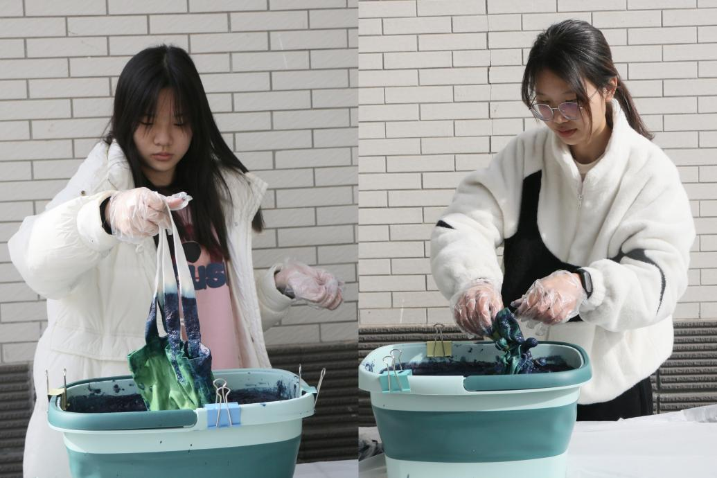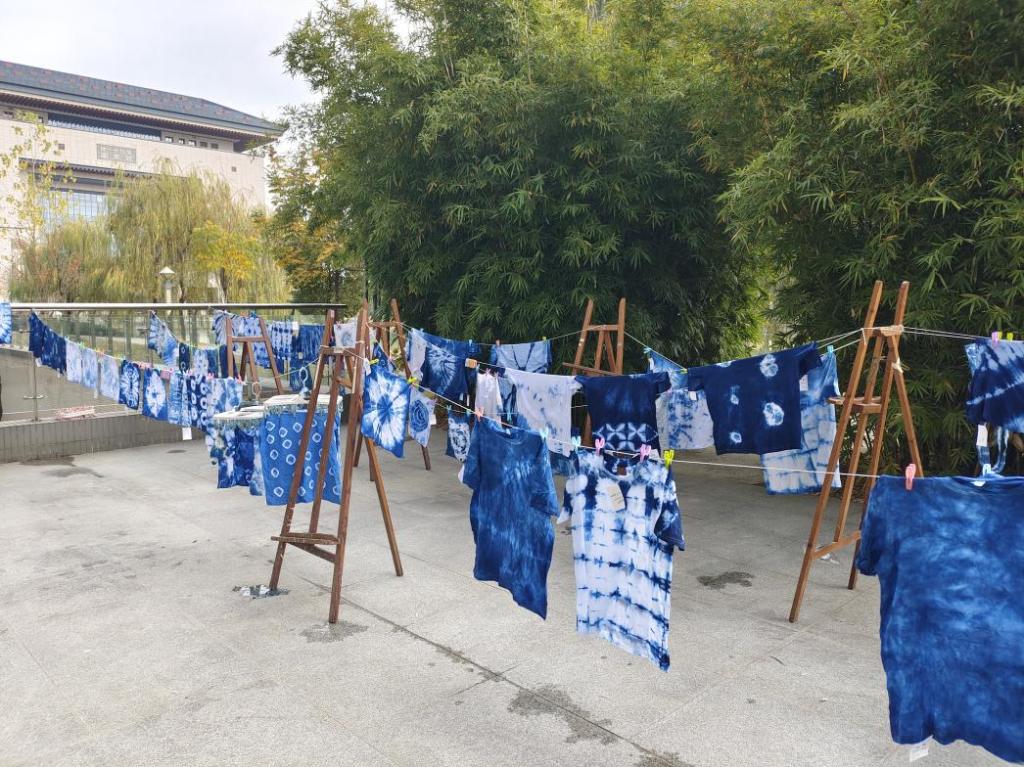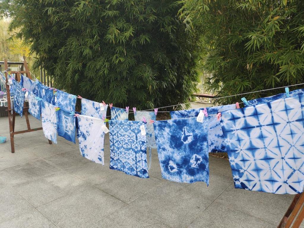 一块块普通的布料,经过扎染之后,变得独具特色,有的如梦如幻,有的色彩斑斓,让人赞叹不已。当一幅幅精美独特的图案呈现在眼前时,同学们个个喜不自禁,拿起手机拍照留念,一同欣赏着彼此的成果,他们纷纷表示充分感受到了扎染的魅力,在此次活动中深刻体会到了古法扎染的审美趣味与劳动情怀,领略到了中国传统文化的千年底蕴,民族自豪感由“染”而生。活动现场充满了艺术气息与欢声笑语。