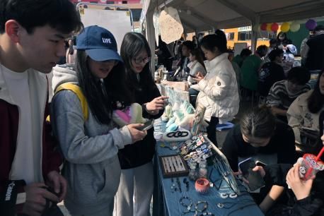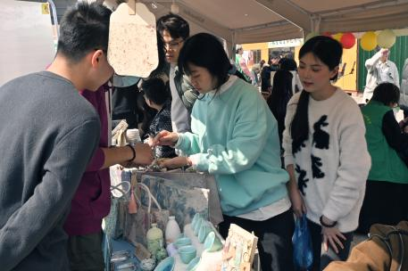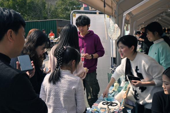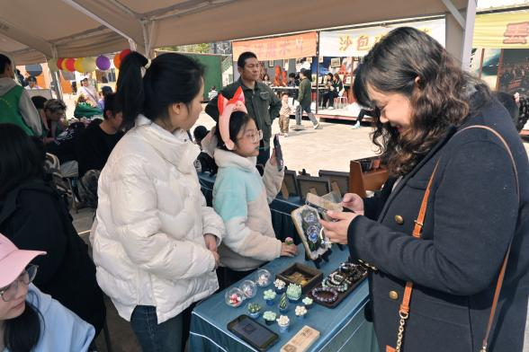 我校教务处韦玮处长亲临现场,穿梭于各个学生摊位之间,对这些充满创意和热情的作品赞不绝口。她表示,这些作品不仅体现了学生们的精湛技艺,更展现了他们对艺术的热爱和追求。在韦处长的鼓励下,学生们备受鼓舞,纷纷表示将继续努力,创作出更多优秀的作品,为工艺美术事业贡献自己的力量。