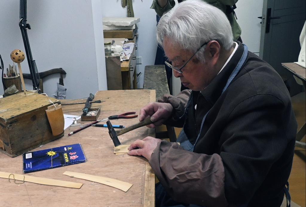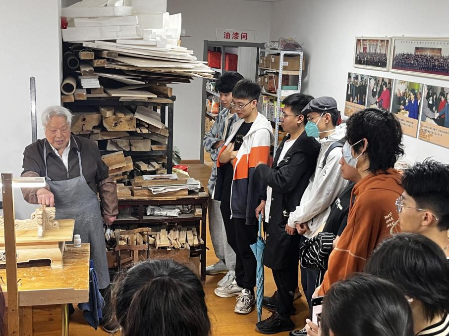 随后,同学们前往国家级非遗项目“武汉木雕船模”传承人龙从发大师工作室。在与国家级非遗传承人龙从发大师的深入交流中,同学们们受益匪浅。龙大师亲切地与每一位学生交流,分享着他多年来对非遗传承的理解和体会。他强调了非遗传承的艰辛和责任,鼓励学生们要坚持不懈地学习和探索,才能真正传承和发扬传统工艺。