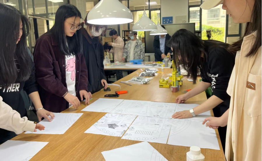 通过活动前期招募,将学生按照年级分为了四个小组,每个组内高年级低年级学生平均分布,以春、夏、秋、冬四个季节为主题进行方案设计和实体模型制作。本次活动依托于2021级《风景园林》课程进行前期方案设计,最终选取四个不同季节的绿色小镇方案,进行CAD和SU设计制作,由四组指导老师带队完成实体模型制作。