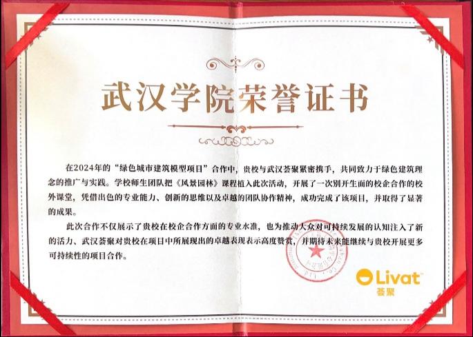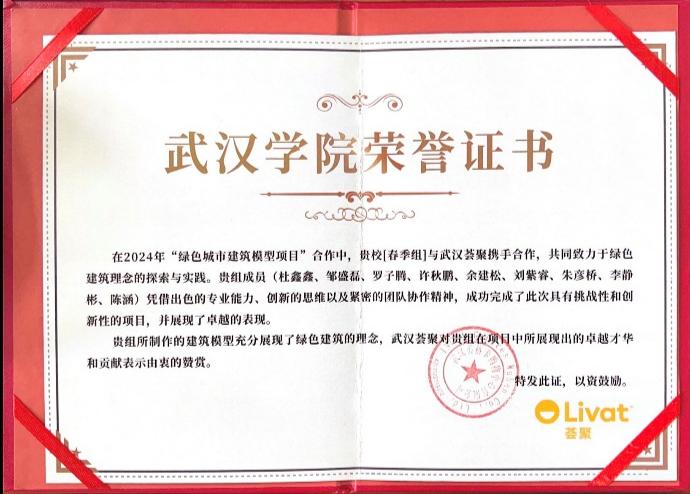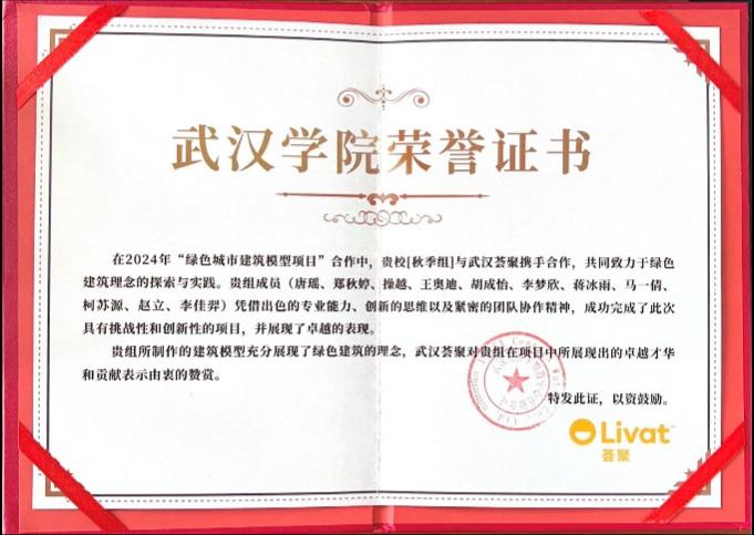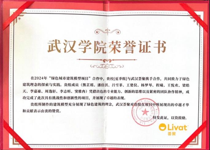 “绿色城市建筑模型项目”荣誉证书