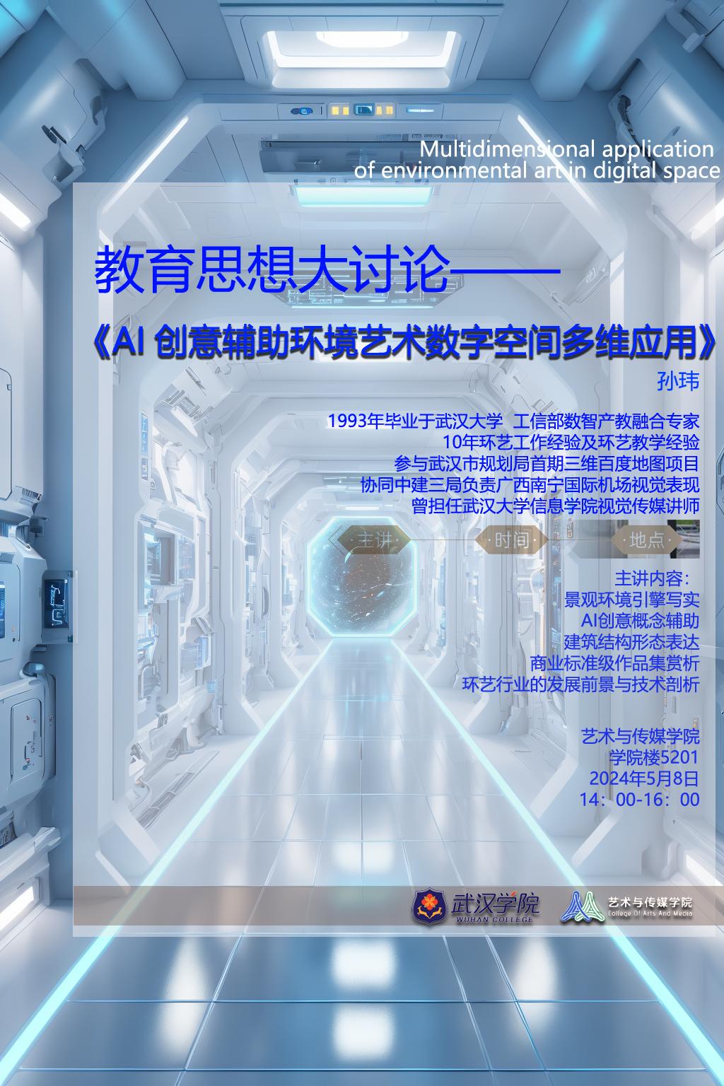5月8日下午2点30分,工信部数智产教融合专家孙玮老师莅临yL23411永利官网登录。在我院5201教室作题为“教育思想大讨论——AI创意辅助环境艺术数字空间多维应用”的专题讲座。