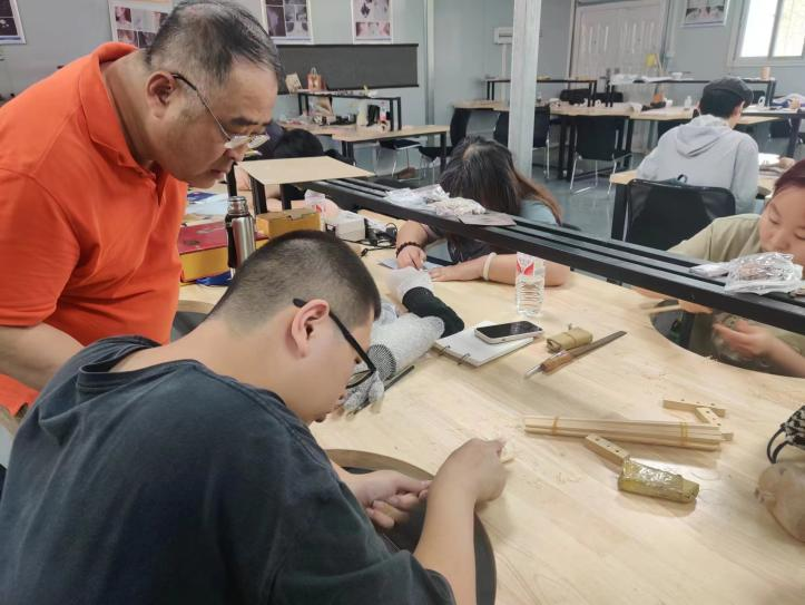 此次非遗大师课于2024年5月22日下午一点四十分在我校新珠宝首饰实训室开始,工艺美术专业优选十多名学生参加这次活动。课程开始龙勇大师为大家介绍了武汉木雕船模工艺的发展历史、工艺特点,以及该非物质文化遗产的保护与传承情况。随后,龙勇大师将木雕船模制作的几项代表性技法进行现场演示,并指导同学们进行木雕船模的零配件制作。