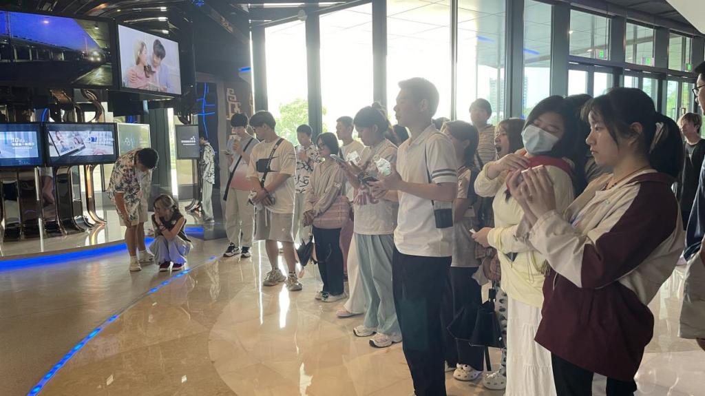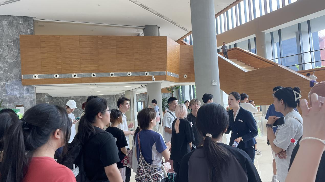 本次考察实践也是一次室外互动课堂,学生与老师热烈讨论、互动频繁,用心观察、感受科技文化之美。2103班的唐瑶同学感慨:“整体看腾讯武汉研发中心,大厦整体外观简约大气,展厅科技感满满让人能直观感受到科学带来的视觉冲击,讲解员的讲解也让人更了解腾讯这个企业的前后历史和发展状态。对展示空间设计有了更加清晰的概念。”2104班的徐哲同学认为:“腾讯总部的设计展示了对细节的严谨追求。整个办公楼的布局和装饰都考虑到了员工的工作需求和舒适度。宽敞明亮的会议室,人性化的休息区域。都体现了腾讯对员工的工作环境的重视。此外,各种创意十足的装饰和艺术品也展示了腾讯对美感和艺术的追求。也让我对未来的职业规划和学习动力有所启发。我希望未来也能像他们一样发挥自己的才能,创造出有价值的产品或服务,为社会做出贡献。”