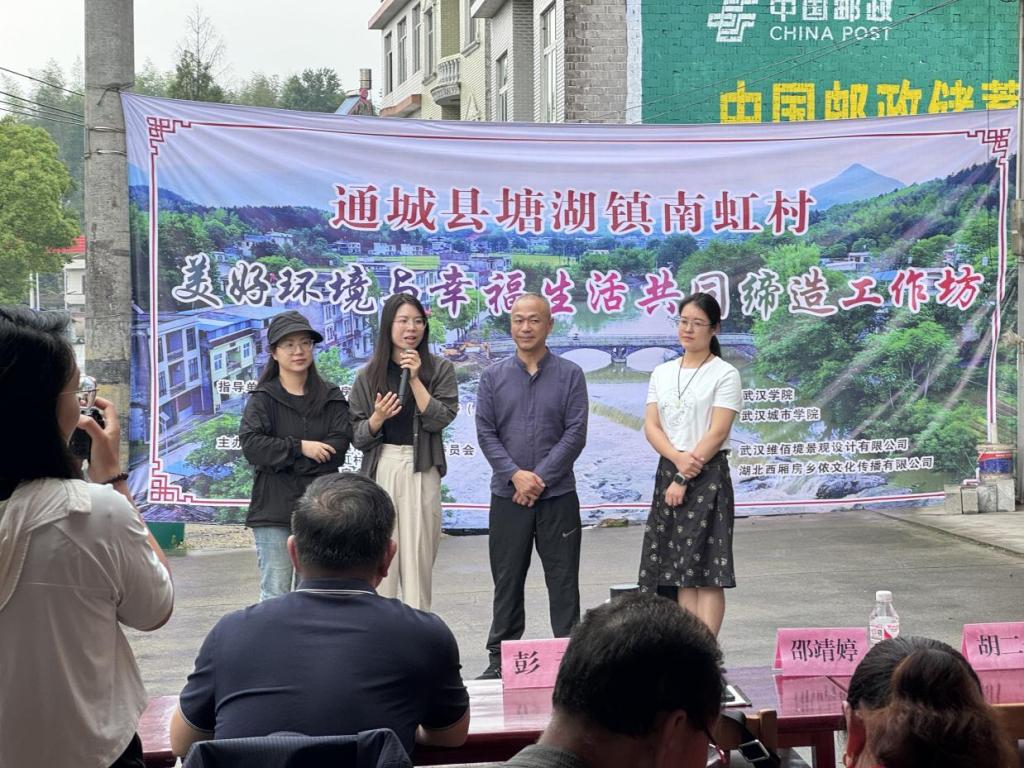 我院邓凯灵老师、汪东老师与其他老师也一同上台,分别和大家分享了对于南虹村共同缔造工作坊的感受和接下来的共同缔造工作计划,号召南虹村的广大群众要积极参与到村庄建设中来,从身边的小事做起,从改善房前屋后的环境卫生做起,进一步推进共同缔造活动走深走实,共创美好环境,共赴幸福生活。
