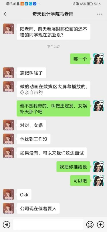 武汉奇天动漫插画有限公司马经理与数字媒体艺术1802班黄诗涵同学交流毕业设计作品