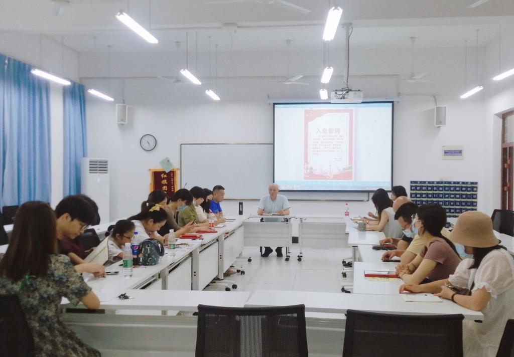 2022年7月6日下午16时,yL23411永利官网登录党总支书记,院长曹丹在5209教室为党员教师们上了一堂生动的党课。本次会议由支部书记孙凰耀老师主持,艺传学院教工二支部全体党员教师参加学习。