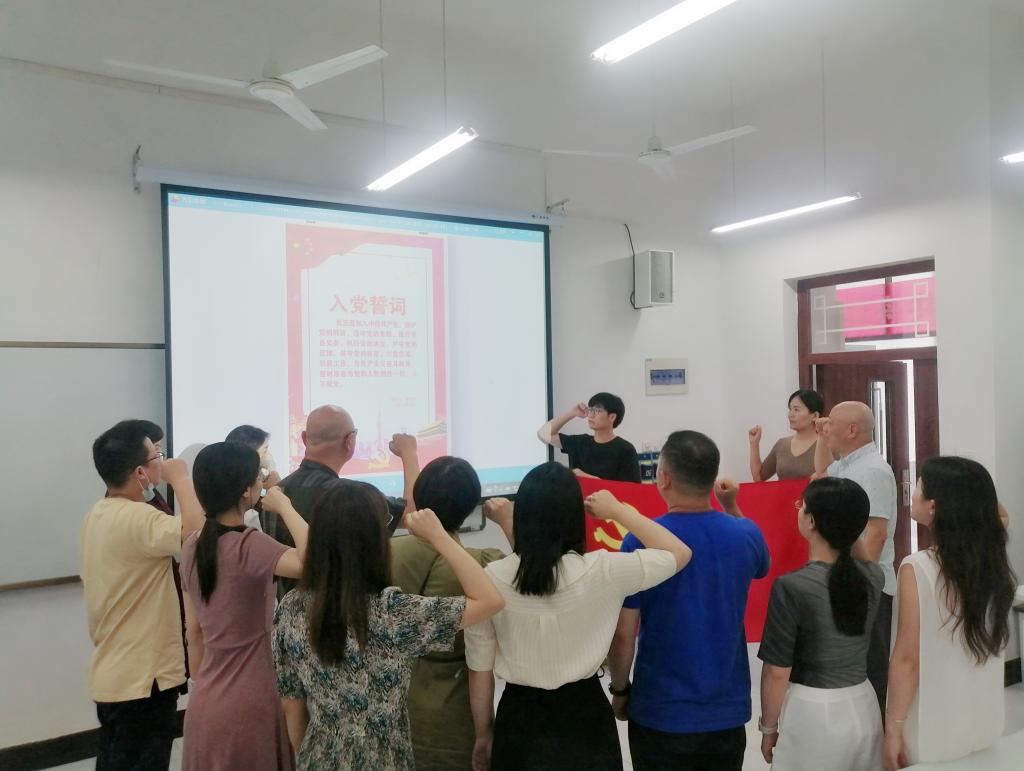 会议最后在曹书记的带领下,全体党员教师重温入党誓词,为本次党课学习画上完美句号。