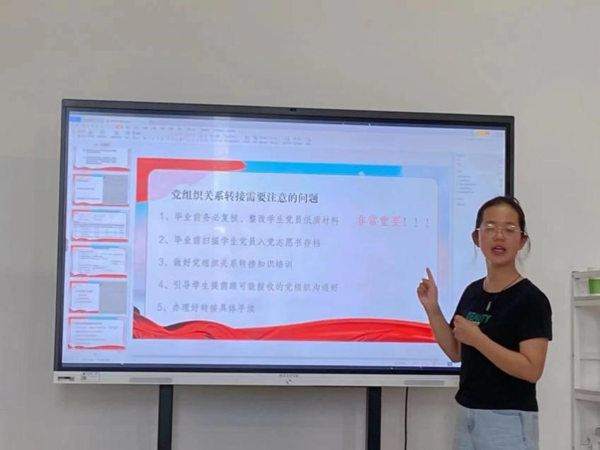 培训中,主讲人王桂红副部长以党员发展细则为切入点,讲述了发展党员的流程及管理。组织员梅秀老师以“学生党员的教育与管理”为题,细述学生党员党组织关系接收与转出的规范性流程。