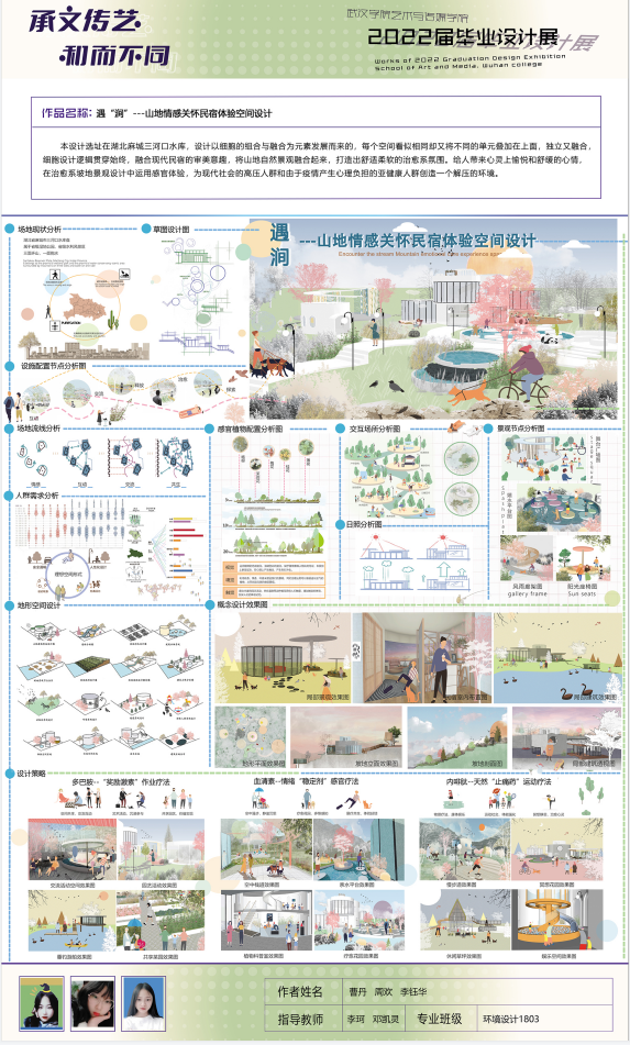 四年来,2018级环境设计专业的学生致力于对不同的特定场所进行构思、设计,题目类型多样,覆盖了环境设计专业的主干专业知识,交上的此份答卷是对四年专业学习的检验。2018级环境设计毕业每件作品都凝结了学生与教师们的心血,由于此次作品太多,本次毕业作品线上展经教研室遴选后展示。