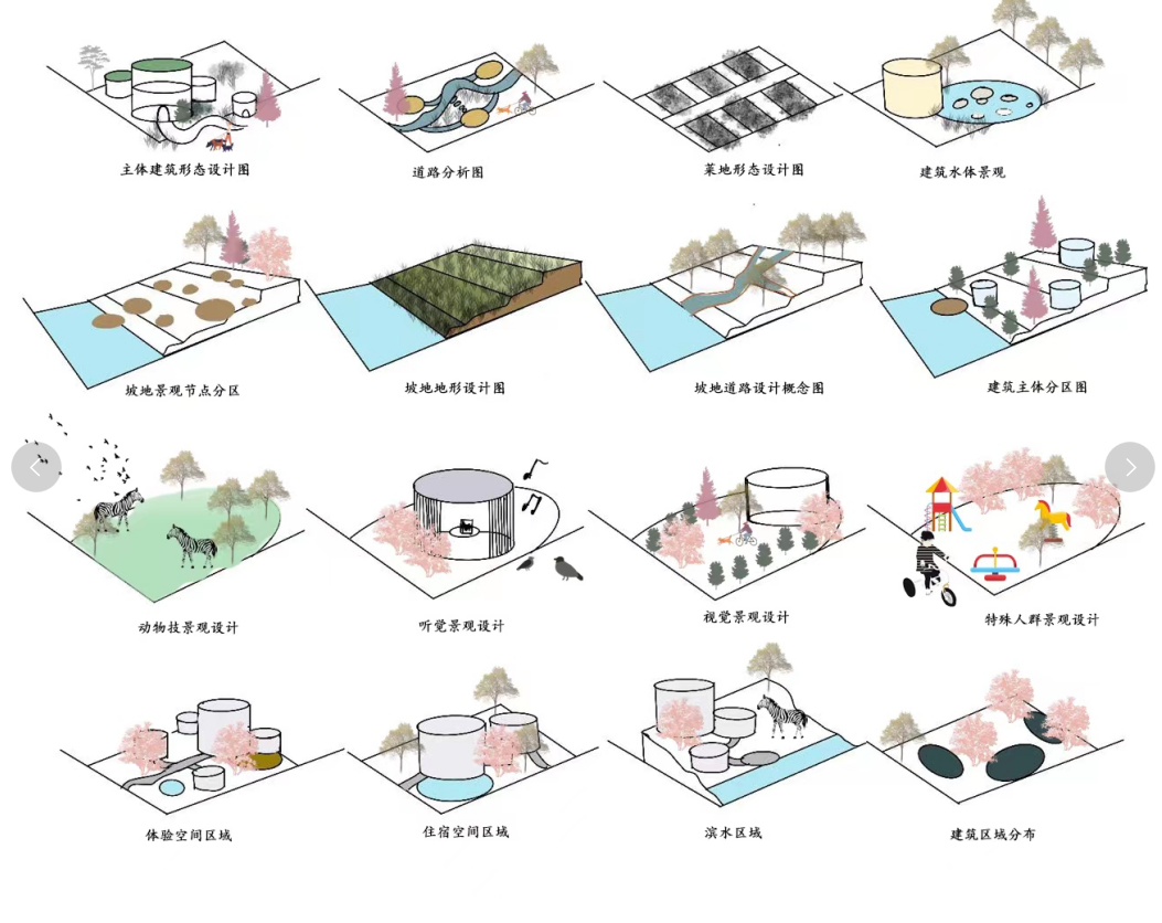 设计说明:本设计选址在湖北麻城三河口水库,设计以细胞的组合与融合为最初概念发展而来的,每个空间看似相同却又将不同的单元叠加在上面,独立又融合,细胞设计逻辑贯穿始终,融合现代民宿的审美意趣,将山地自然景观融合起来,打造出舒适柔软的治愈系氛围。给人带来心灵上愉悦和舒缓的心情,在治愈系坡地景观设计中运用感官体验,为现代社会的高压人群和由于疫情产生心理负担的亚健康人群创造一个解压的环境。